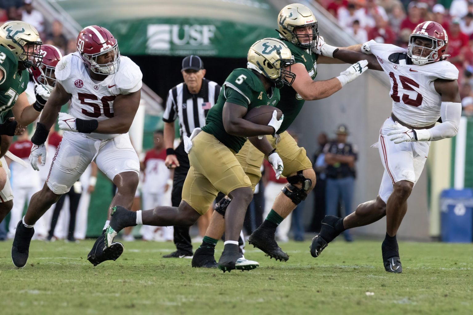 Reading: Weathering the Storm: USF Bulls Stun #10 Alabama in Unexpected Battle